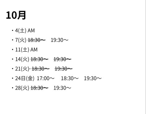 ・下記の日程以外にも可能な場合があるので、ご相談ください。